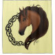 A brown horse side portrait profile with tribal celtic knot work in a circle in a backdrop of yellow