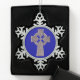 Silver Celtic cross against a blue background centres this lovely pewter snowflake ornament