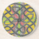 A design hand drawn with pen and colour pencils, producing an abstract pattern that replicates a loose celtic knot.
