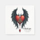 Celtic elegance with a heart and wings. An elegant, decorative frame chraacterised by Celtic knotwork. A vibrant red heart stands out as a central element at the bottom of the design. Within the heart is a Celtic knot symbol, symbolising connection and protection. The heart is flanked by dark, feathered wings, giving it a majestic and protective appearance. Delicate peach blossoms with yellow centres are arranged on either side of the heart.