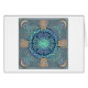 Celtic knotwork in earthy tones of blue, green, and tan, centred around a blue-green 'eye'. A beautiful abstract design, celebrating the earth.