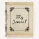 Spiral bound bullet journal features antique paper background with Celtic knot frame border