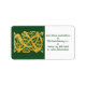Sheets of name and address labels that feature an ancient celtic motif of a coiled golden snake on a dark green background. The background colour can be changed with the Customise It button.