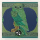 Owl drawn in celtic knot work design with celtic bored all in green with a green celtic knot work border.