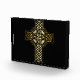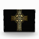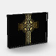 Celtic knot cross in gold and black embellishment. frontiernow.com