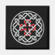 A square magnet with a Celtic knot design with a red square cross in the centre.
