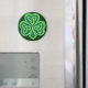 The Irish design on this refrigerator magnet is a Celtic Knot shamrock in shades of green.