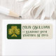 The artwork of a Celtic knot shamrock is printed in gold that has a faux-metallic look and is placed against a dark green background. Customize with your own name and return address by using the easy provided text templates.