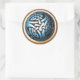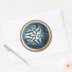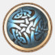 A circular Celt knot design in blues, against a patterned backdrop in soft browns. Stick on things. Anything, really. The main thing is, stick it on things.