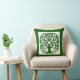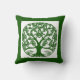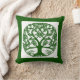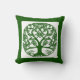 Pillow in a stylised, Celtic knot, tree of life design in dark emerald Green on a white background