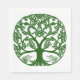 Paper napkins in a stylised, Celtic knot, tree of life design in dark emerald Green on a white background