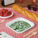 Paper plates in a stylised, Celtic knot, tree of life design in dark emerald Green on a white background