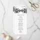 This card allows you to describe your wedding party on one side, and your wedding ceremony program on the other. Customise if you need to add extra lines of text. Featuring black twining leaves and vines in a Celtic knot pattern against a white background.
