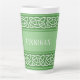 Irish / Celtic themed design featuring top and bottom green and white Celtic knots patterned band with customisable centre text.