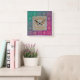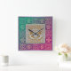 10.75” x 10.75” acrylic wall clock with an image of an ombre green and red chequerboard of two different Celtic knots with a brushed silver border. In the centre is a silver and orange Claddagh with a border of Celtic knots. See the entire St. Patrick’s Day Clock collection in the DÉCOR | Clocks section.