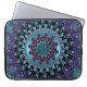 Celtic Mandala on Colourful Fractal Laptop Bag. Spiralling Shades of Purple, Turquoise, Blues and Green surround a Celtic metallic mandala with a Celtic knot at the centre and decorate this laptop Sleeve. A colourful fractal abstract geometric pattern brighten this protective cover and make a unique and distinctive sleeve, guaranteed to protect in style.