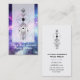 Making up the background of this spiritual metaphysical card is a universe with stars and galaxies. Some of the colors are purple, turquoise, navy blue and pink. This celestial metaphysical spiritual cosmic background can be described as artsy, new age and mystical. A beautiful watercolor of cosmic outer space and universe nebula star filled background make up this amazing business card. This modern unique card is as chic and feminine as well as it is strong and masculine.