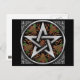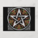 Artistic Celtic pentagram design in polished silver metal. Fire-breathing dragons in red and green. Intricate corner scrollwork. Elegant gift for Wiccans, Pagans, followers of the earth religions.