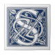 A beautiful, decorative embossed celtic letter illuminated with grey dragon heads on a velvety dark blue background.