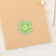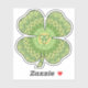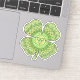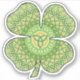 This classic four leaf clover overlays a concentric circle design featuring layers of Celtic weaves in multiple shades of green with a bit of orange for accent.