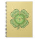 This classic four leaf clover overlays a concentric circle design featuring layers of Celtic weaves in multiple shades of green with a bit of orange for accent. Three background colors have been provided with the yellow version currently shown.