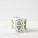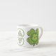 This classic four leaf clover overlays a concentric circle design featuring layers of Celtic weaves in multiple shades of green with a bit of orange for accent. This mug is available in jumbo, espresso, and bone china sizes and styles.