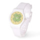 This classic four leaf clover overlays a concentric circle design featuring layers of Celtic weaves in multiple shades of green with a bit of orange for accent. This watch is available in a variety of colours, styles, and sizes, including sizes for both kids and adults.