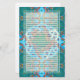 A Celtic knotwork sea turtle swims against a circular blue knotwork sea. With a geometric knotwork pattern as a background. Lined stationery.
