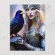 A modern contemporary fantasy warrior princess portrait design inspired by Tribal Celtic and Norse Viking mythology with a crow bird.