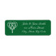 An emerald green return address label is decorated with a white Celtic weave heart on the left and sample text on the right for customising to make it your own.