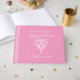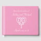 Create a lovely custom way for the guests of your wedding or event to leave their names and messages for the happy couple. A pale petal pink background is decorated with a white Celtic weave heart on both the front and the back. Alongside the spine, a weave of stylised hearts in a chain creates an elegant accent. The front has a sample message, names, and date that can be customised to make this book unique for the event.