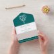 Bring touch of elegance to your event with this all-in-one wedding invitation and RSVP card. On the inside you will find a white Celtic weave heart on a rich teal background above a section with some sample text that can be customised for your special day. The lower section of the invite features a removable, postcard sized piece that has some sample RSVP text sitting above a teal border with a Celtic weave pattern made up of intertwined hearts decorating the bottom. Outside, a similar Celtic weave border on teal can be found below the areas where you would add stamps, standard, and return addresses for both the invitation as a whole and the returnable RSVP section. The flap used to fold over and seal the card has the larger Celtic weave heart on a rich teal background with a sample set of initials that you can customise for a final personal touch. Be sure to check out the rest of the Celtic Weave Hearts in Teal set for other coordinating products, including return address labels.