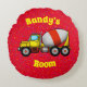 TWO PILLOWS IN ONE! A cool cement mixer makes up this fun reversible pillow. Flip it over for a whole new look. Customisable so you can add your own text and change the background colour. This design is also available on a square pillow.