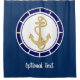 Central Golden Anchor Navy Blue Nautical Shower Curtain