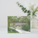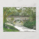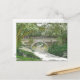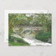 View of a path and brick bridge with trees and shrubs. Image has been edited from the original.