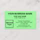 Centre aligned style light green business card for your customers or clients to easily find your business address and contact information. Customise it by uploading your business logo, typing your business name, your name, your title, address, phone number, e-mail and website or social media page. Please check the appearance of the front and back sides after uploading logo and typing texts. If the appearance is pleasing to you, you can place your order now. If you need to resize or reposition the logo and texts, please adjust in the design tool. You can also change the background colour, font colour and font style in the design tool.