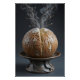 A ceramic art piece capturing the warmth and rustic beauty of a freshly baked artisan loaf of bread. The bread is sculpted with a deeply scored, textured crust, finished in earthy glazes of golden browns, tans, and subtle matte whites that suggest a light flour dusting. The exposed crumb is rendered in lighter clay tones with a soft creamy glaze, enhancing realism. The loaf rests upon a sculpted ceramic plate, finished with rich metallic-style glazes such as aged pewter, bronze, or oxidized copper. Rising from the loaf are delicate, translucent ceramic wisps or painted strokes, evoking ethereal steam. Depending on the form—sculpture, relief tile, or painted pottery—the piece emphasizes tactile textures and masterful glazing techniques, from crackled flour effects to flowing steam. Dramatic, chiaroscuro-inspired lighting highlights the bread’s surface and the interplay of ceramic textures, creating a warm, rustic, and visually captivating representation of comfort and craft.