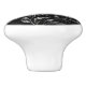 This ceramic cabinet knob is shown in a black and white multi vine leaves print.