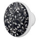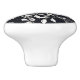 This ceramic cabinet knob is shown in a black and white multi vine leaves print.
