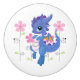 This ceramic cabinet knob is shown in white with a cute purple dragon and pink flowers print.