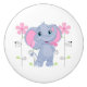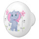 This ceramic cabinet knob is shown in white with a cute elephant and pink flowers print.