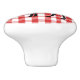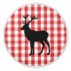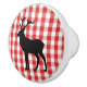 This ceramic cabinet knob is shown in white with a Red plaid print with a elk print.