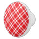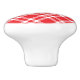 This ceramic cabinet knob is shown in white with a Red plaid print.