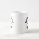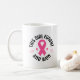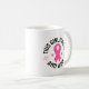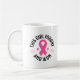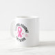 This ceramic coffee mug is shown with a breast cancer awareness print.