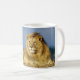 Ceramic coffee mug shown with a photo print of a great wild lion. Customise this item or buy as is. Stock Image