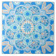 This 6" decorative tile has an intricate light blue geometric on a white background. Look closer.. you will see the tiny accents of apricot. This is not AI. This is a handmade pattern.