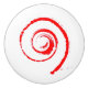 Customisable ceramic knob with red twirl design printed on the front.