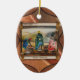 The tooled leather handcraft design and the leprechaun reader on one ornament