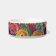 This is a heavy, durable bowl decorated with Tibbies of many colors, the perfect size for hungry/thirsty Tibs. The design is interesting and printing clear.