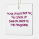 at christmass as a hanging decration for the chritmass tree.. its white porcline or cramic but very well made with added photo on one side.. also has a lovley red bag to keep it in.. execlent printed text in bold and black stands out well aganst the blue background of the photo.